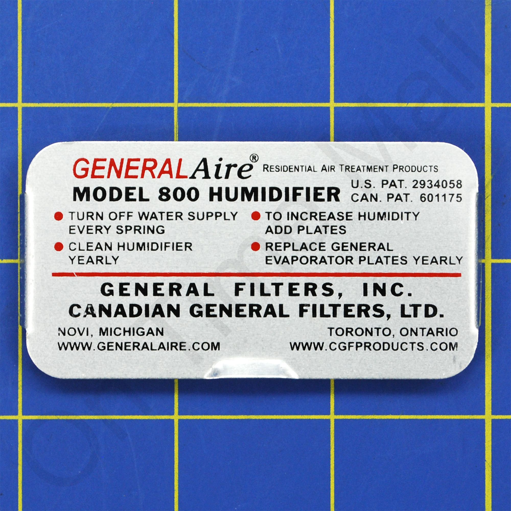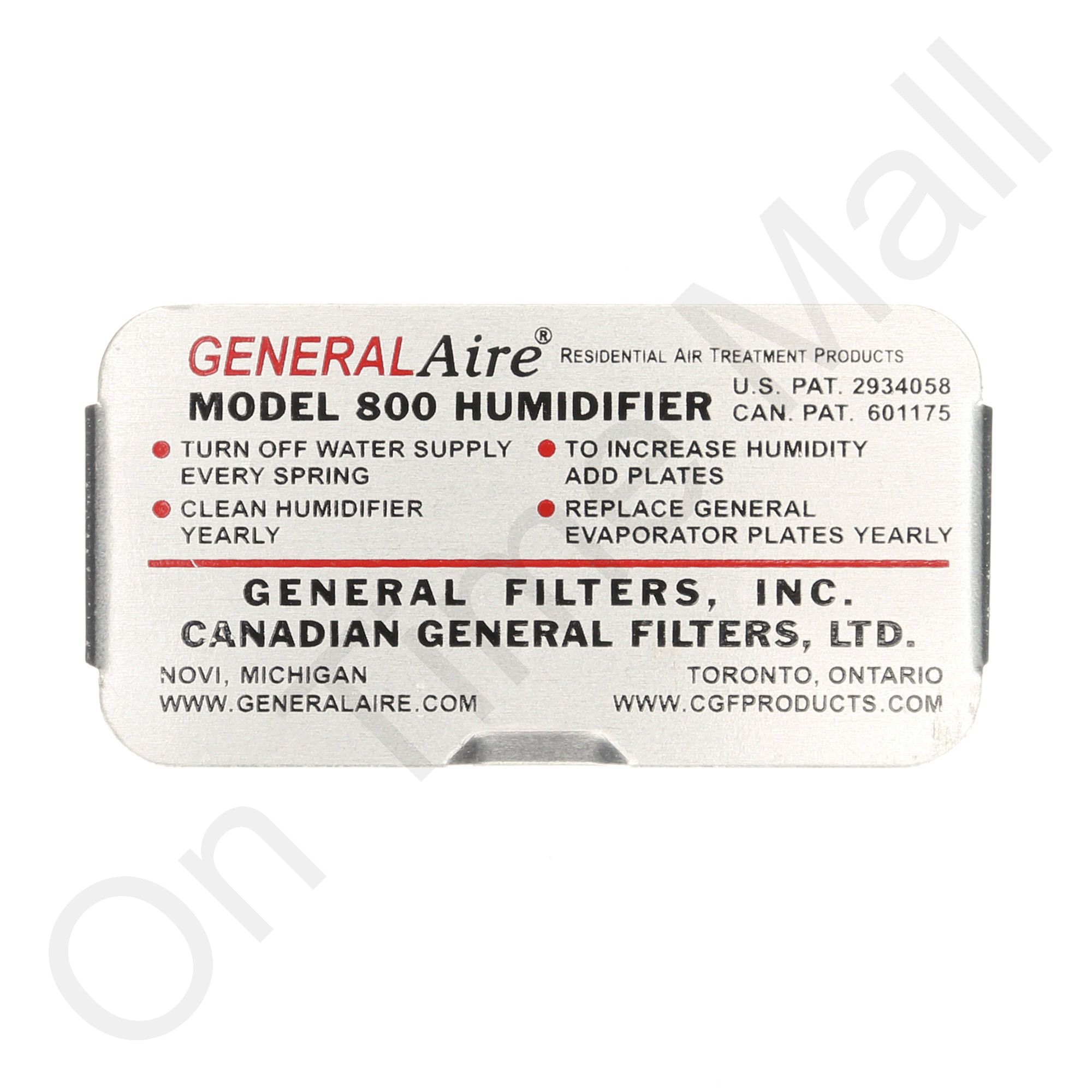 General Aire 800-E Inspection Plate